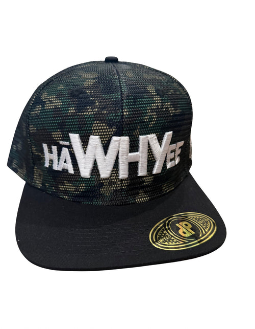 Camo (White stitch) Ha-WHY-ee Hat.